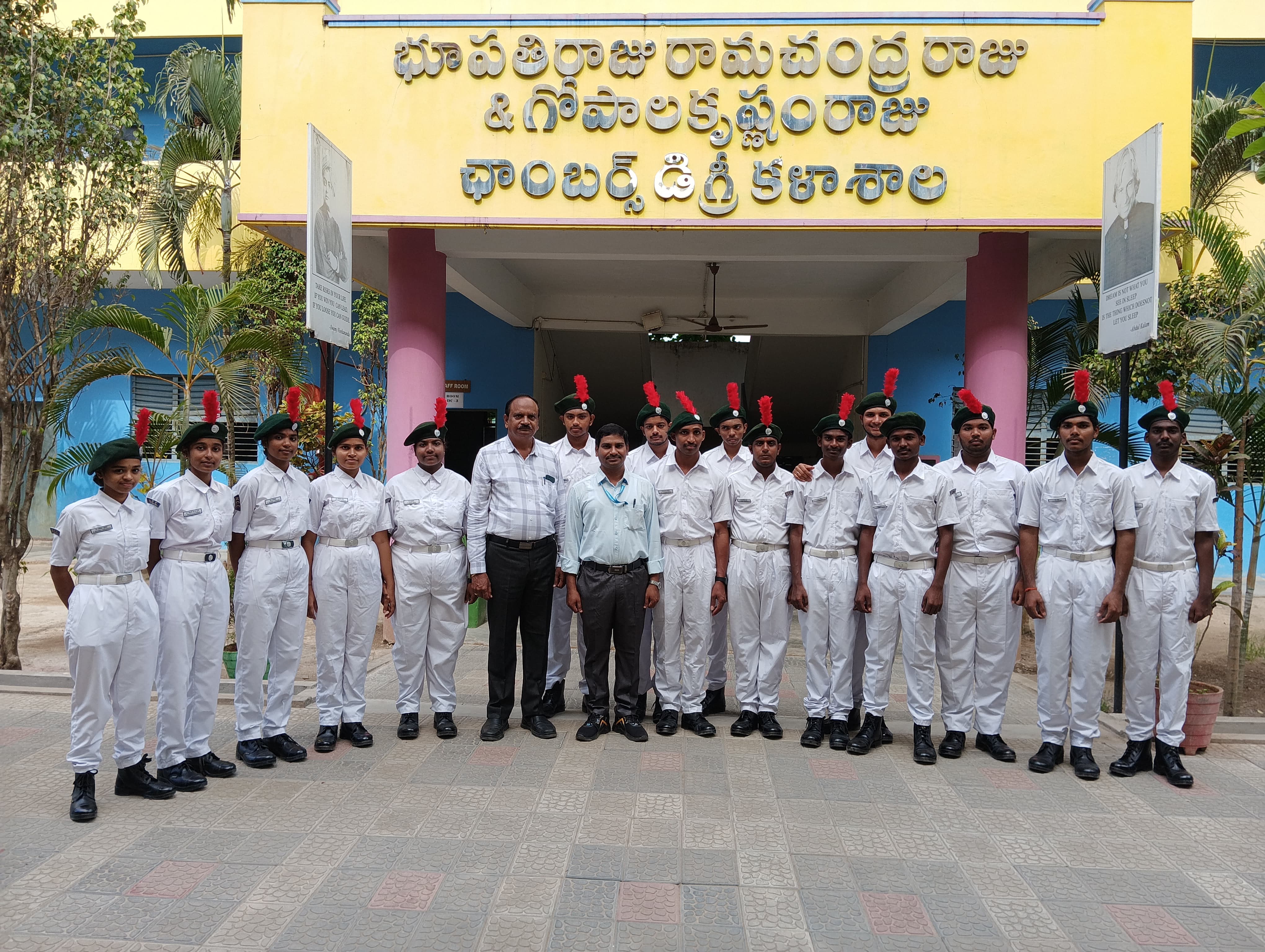 Our college NCC students in Uniform and attending to 7(A) Naval Unit, Narsapur for drill, firing & boat pulling etc. Congrats to all NCC Cadets.