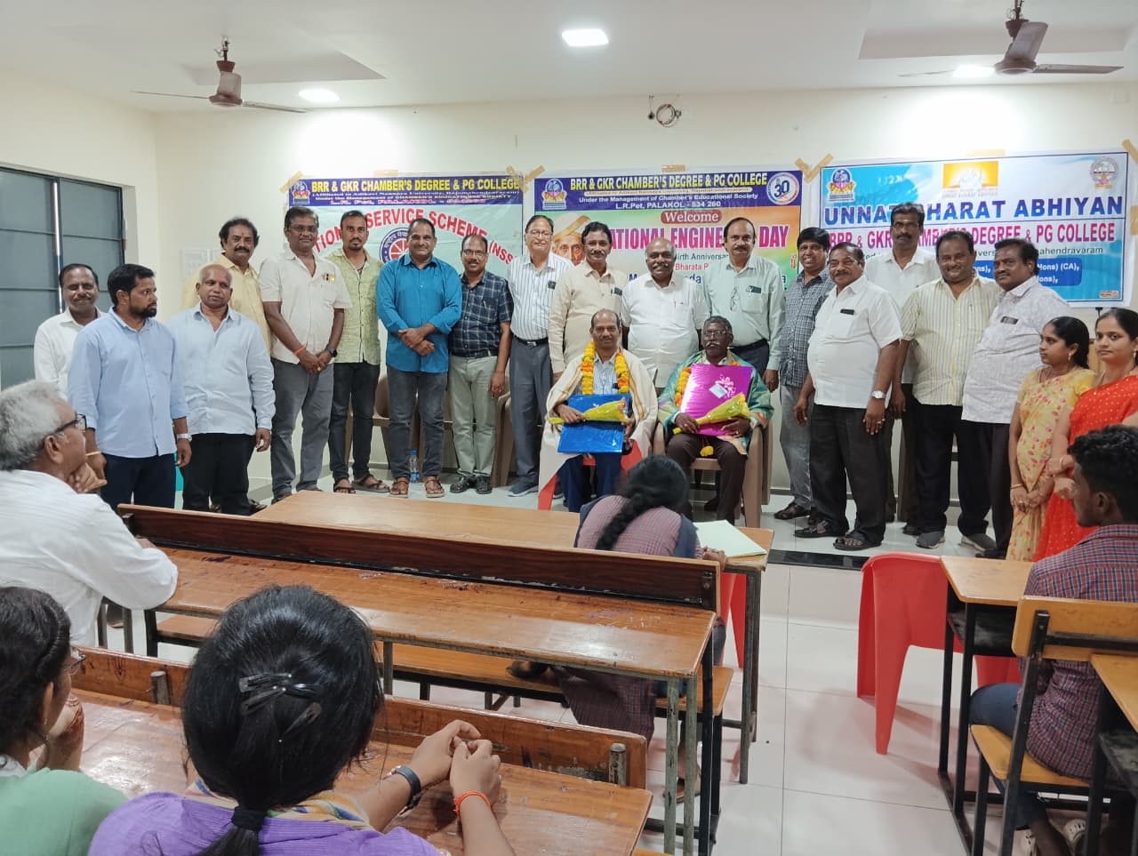 National Engineers Day Celebrated in our Degree College by NSS Units and Unnath Bharath Abhiyaan wing of our Chambers College. On this occasion felicitations were conducted to our college Engineers, Sri T.Subba Rao garu & Sri V.Ravindranath garu.
